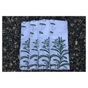 迷迭香の手拭いの特徴は、あえて良き昔に記念品として配られていたような白地が多いシンプルなデザインにしています。もちろん、染め上げられている植物の図案は迷迭香(ローズマリー)です。