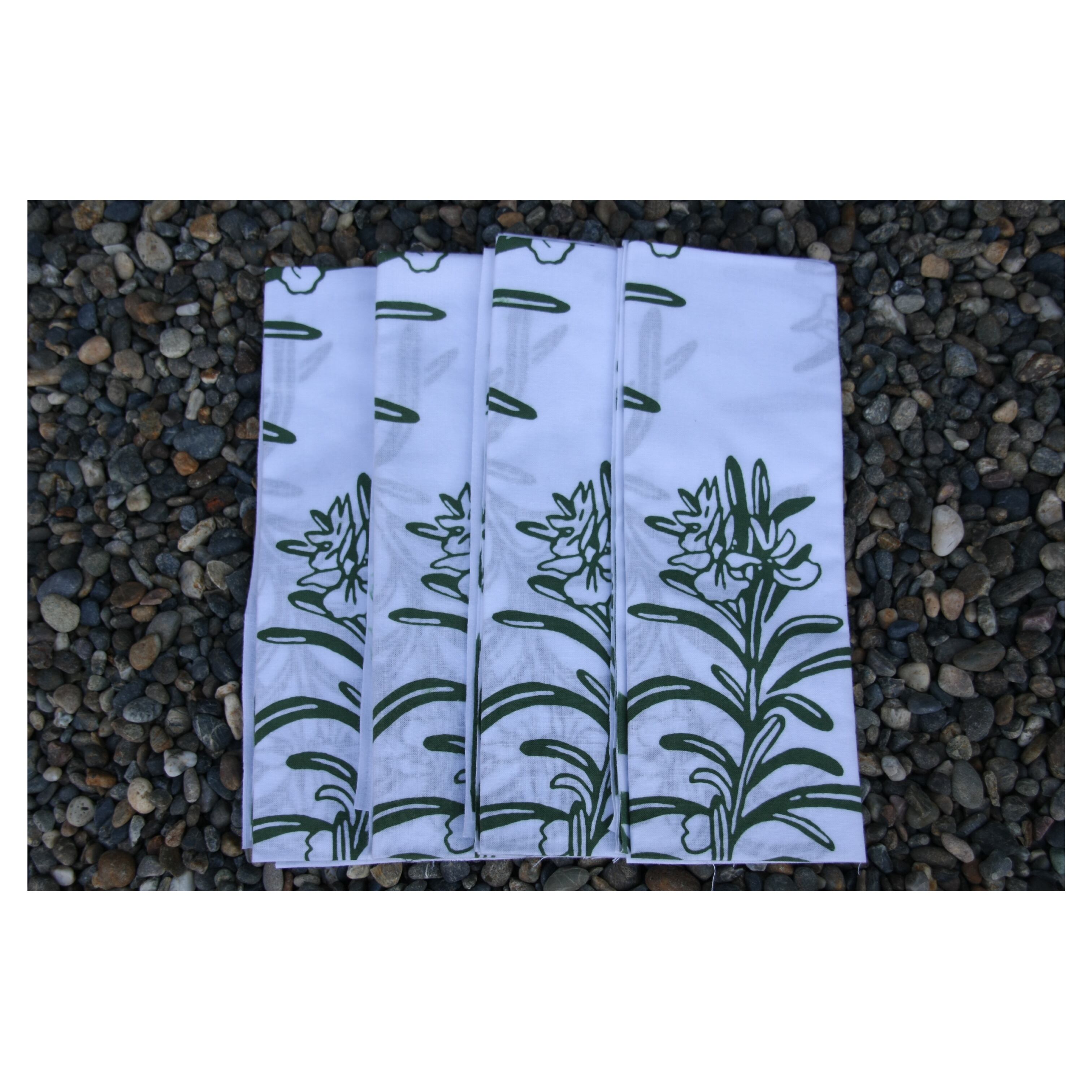素材は、晒木綿に拘り、梨園染の手ぬぐい用に特別に織った生地を使用しており、打ち込み(寸間あたりの生地の本数)が多いので丈夫なことが特長です。